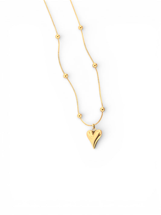 Bead Heart drop pedant necklace ( stainless steel )