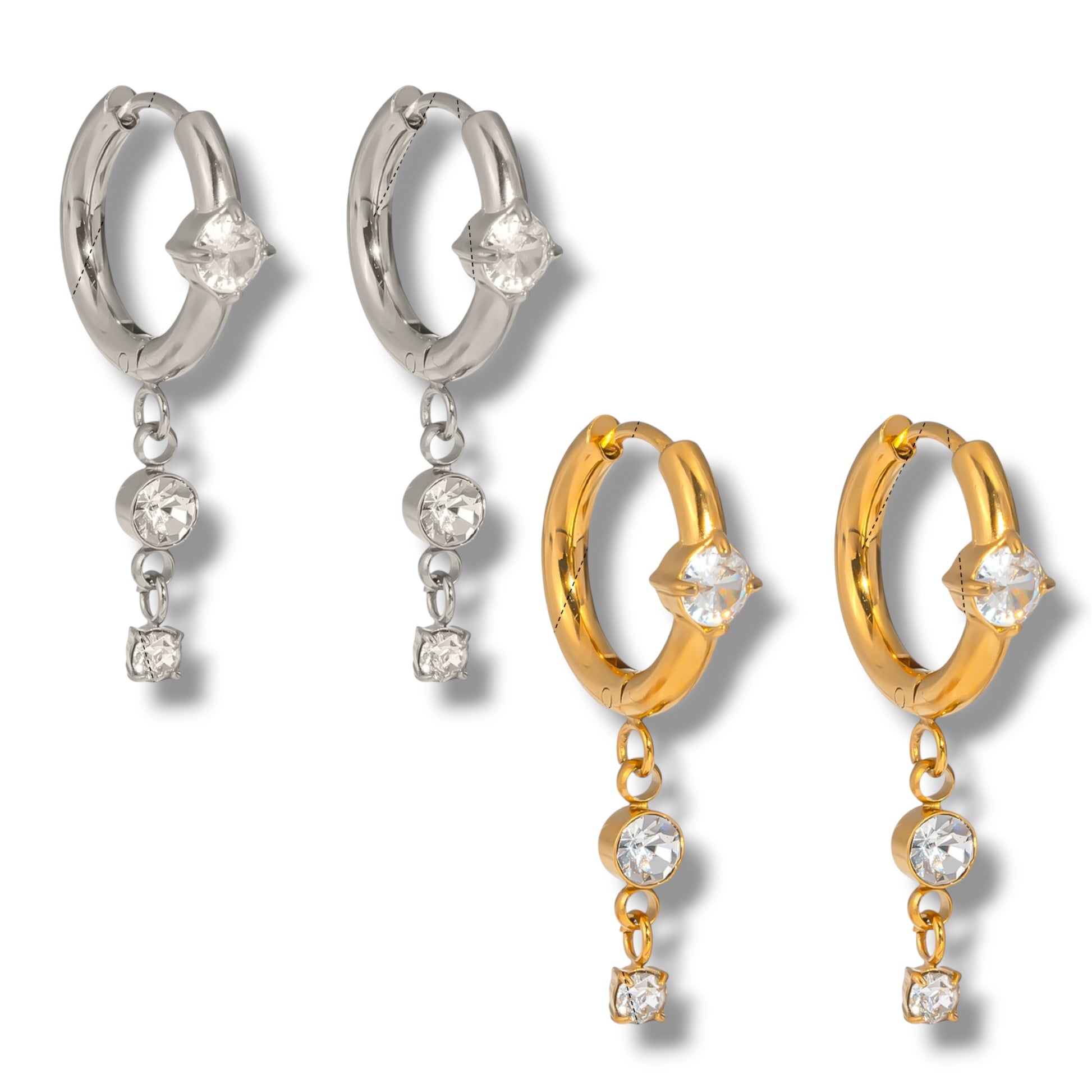 Introducing the Symi huggie, the perfect accessory to add a touch of class to any outfit! Made with durable stainless steel, these drop stone earrings are both stylish and practical. Upgrade your huggie game with this classy addition to your jewelry collection.